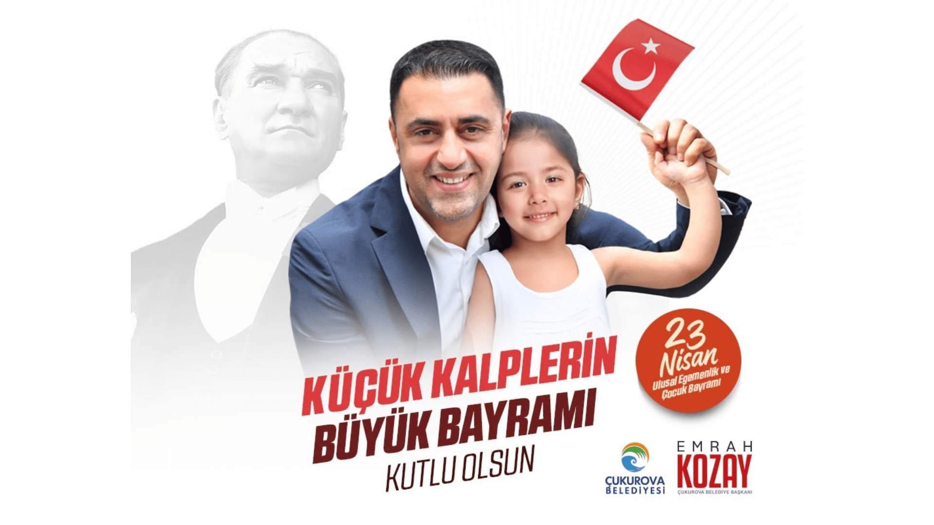 Çukurova Belediye başkanı Emrah Koray, bir mesaj yayınlayarak 23 nisan Uusal Egemenlik ve Çocuk Bayramı’nı “Küçük kalplerin büyük bayramı kutlu olsun” sözleriyle kutladı.